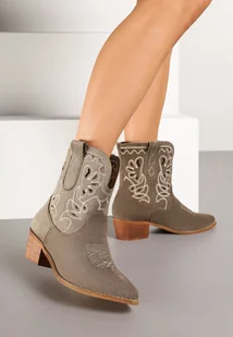 Zielone Botki Vices na Obcasie w Stylu Kowbojek z Haftem Nelithraea