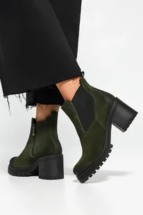 Zielone botki skórzane damskie na szerokim klocku z gumą PRODUKT POLSKI Casu 60497-38