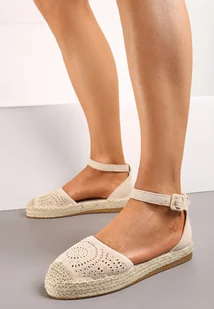 Beżowe Espadryle na Płaskiej Podeszwie z Ażurowym Zdobieniem Zapinane Wokół Kostki Vizimaia
