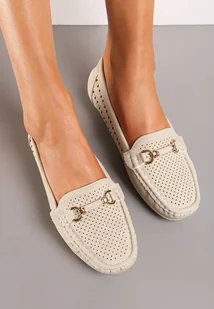 Beżowe Mokasyny Ażurowe z Metalową Aplikacją Carpasia