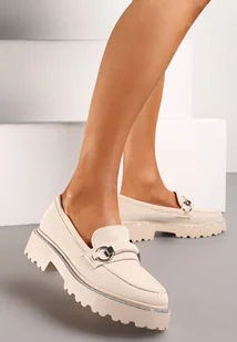 Beżowe Mokasyny na Grubej Podeszwie z Paskiem z Cyrkonii i Klamrą Planktis
