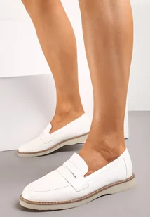 Białe Klasyczne Mokasyny Ozdobione Wstawką i Przeszyciem Berdafa