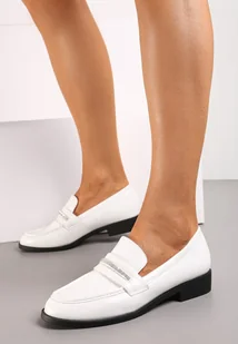 Białe Wsuwane Mokasyny z Imitacji Skóry Zdobione Cyrkoniami Croiss