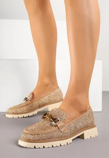 Brązowe Mokasyny Ozdobione Metaliczną Aplikacją Plecionką i Koralikami Lisvia