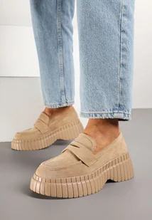 Ciemnobeżowe Mokasyny na Platformie z Tłoczeniem Ozdobione Paskiem Fonirea