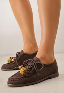 Ciemnobrązowe Mokasyny VICES z Wkładką ze Skóry Natualnej Ozdobione Koralikami
