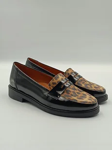 Czarne lakierowane mokasyny skórzane motyw panterki polska marka PULSO r. 39