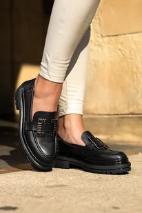 Czarne mokasyny damskie na bieżnikowanej platformie z kryształkami casu jw24x2-b-no-40