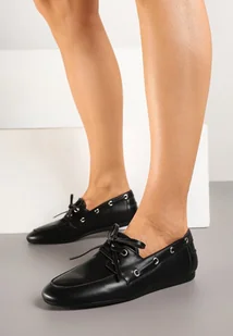 Czarne Mokasyny Ozdobione Sznurowaniem Tolioriana