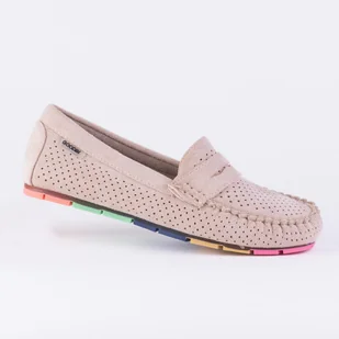 Mokasyny damskie GOODIN GD-FL679 skóra eko zamsz ażurek Beż 41