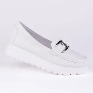 Mokasyny damskie GOODIN GD-FL787B skóra eko klamra platforma biały 36