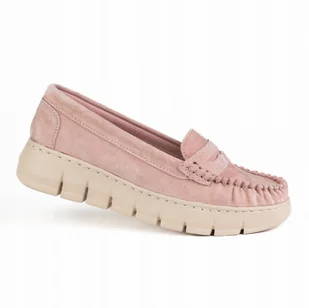 Mokasyny damskie skóra GOODIN GD-FL26003 zamsz platforma wygodne róż 37