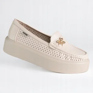 Mokasyny damskie skóra GOODIN GD-FL6101 ażurek lekkie klasyczne beż 40