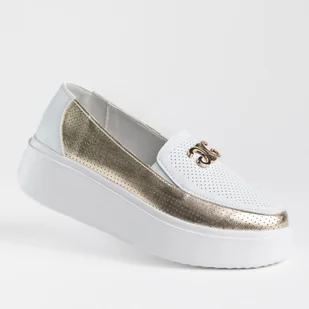 Mokasyny damskie skóra GOODIN GD-FT-121 białe złote platforma lekkie 41 Mokasyny damskie skórzane – Elegancja i wygoda w jednym Mokasyny damskie wykonane z n...