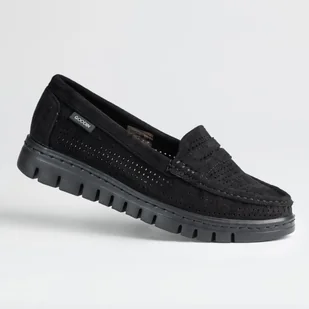 Mokasyny damskie skóra zamsz GOODIN GD-FL6070 czarny lekki ażurek klasyk 36 - Goodin