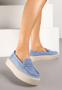 Niebieskie Mokasyny na Grubej Podeszwie z Wkładką ze Skóry Naturalnej Polvia