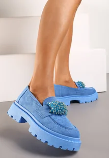 Niebieskie Mokasyny z Biżuteryjnymi Koralikami Ellsara