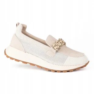 Półbuty mokasyny damskie GOODIN GD-PG2681 skóra siatka wsuwane beż 38 Półbuty damskie GOODIN – styl i wygoda na co dzień Modne i wygodne półbuty damskie GOODIN, które doskonale sprawdzą się w codziennym użytkowaniu. Cholewka wykonana z połączenia przewiewnej siatki i skóry zapewnia lekkość oraz komfort noszenia, szczególnie w cieplejsze dni. Wewnątrz znajduje się wkładka ze skóry naturalnej, która zwiększa wygodę i dopasowanie do stopy. Profilowana podeszwa wspiera stopę podczas chodzenia, dzięki czemu buty są komfortowe nawet przy dłuższym użytkowaniu. Model wyróżnia się także stylową ozdobą w postaci plecionego paska, która nadaje butom modnego charakteru.