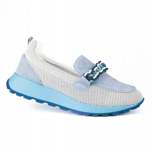 Półbuty mokasyny damskie GOODIN GD-PG2681 skóra siatka wsuwane niebieski 38 Półbuty damskie GOODIN – styl i wygoda na co dzień Modne i wygodne półbuty damskie GOODIN, które doskonale sprawdzą się w codziennym użytkowaniu. Cholewka wykonana z połączenia przewiewnej siatki i skóry zapewnia lekkość oraz komfort noszenia, szczególnie w cieplejsze dni. Wewnątrz znajduje się wkładka ze skóry naturalnej, która zwiększa wygodę i dopasowanie do stopy. Profilowana podeszwa wspiera stopę podczas chodzenia, dzięki czemu buty są komfortowe nawet przy dłuższym użytkowaniu. Model wyróżnia się także stylową ozdobą w postaci plecionego paska, która nadaje butom modnego charakteru.