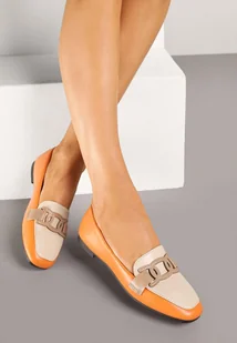 Pomarańczowe Wsuwane Mokasyny z Materiałowym Paskiem Evellia