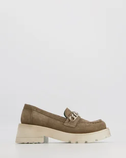 Szare mokasyny damskie wykonane z przyjemnego w dotyku zamszu. Klasyczny krój i uniwersalna stylistyka sprawia, że będą idealnym dodatkiem do wiosenno-letnich stylizacji. lekka podeszwa z bieżnikiem usztywniane noski i zapiętki miękka, skórzana wkładka klasyczne zaokrąglone noski z przeszyciem ozdobny łańcuch