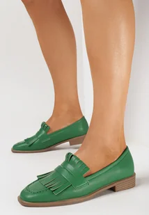 Zielone Mokasyny Ozdobione Frędzlami Przy Kwadratowym Nosku Passa