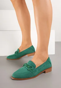 Zielone Ażurowe Mokasyny Vices ze Skórzaną Wkładką Felastra
