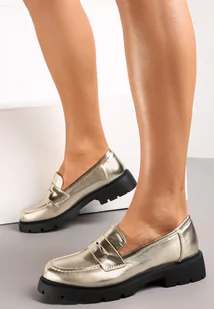 Złote Mokasyny na Grubej Podeszwie z Ozdobną Patką Bambina