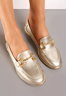 Złote Płaskie Mokasyny z Elegancką Klamerką Mustia