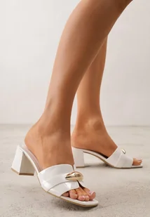 Białe Klapki na Słupku w Eleganckim Stylu Zdobione Podłużną Aplikacją Achythia