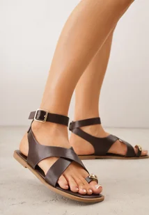 Brązowe Sandały Japonki z Paskiem na Palec i Paskiem Wokół Kostki Vivanya