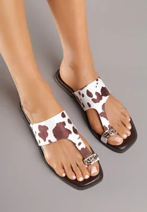 Brązowo-Białe Klapki Vices w Stylu Japonek Ozdobione Metaliczną Aplikacją Arsenlia