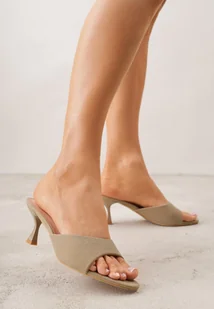 Ciemnobeżowe Klapki na Obcasie Kaczuszka z Odkrytym Noskiem Nadah