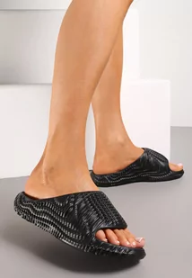 Czarne Gumowe Klapki z Ozdobnymi Żłobieniami Blova