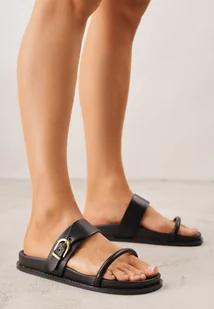 Czarne Klapki z Dwoma Paskami i Metaliczną Klamrą Doriax