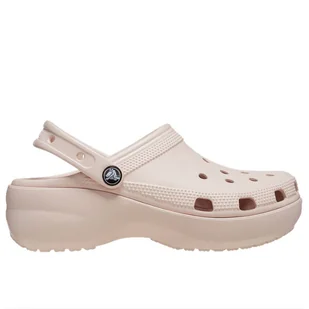 Klapki damskie Crocs Classic Platform Clog 206750-6UR – różowe Klasyczne chodaki na platformie Crocs z serii Classic Platform Clog. Model tego obuwia w odróżnieniu od klasycznej wersji wyposażono w podwyższoną platformę, która nadaje większego szyku. Buty posiadają komfortową konstrukcję z szerokimi wkładkami i tylnym paskiem, który przyjemnie otula piętę. Dzięki wentylacyjnym otworkom buty są przewiewne i zapewniają utrzymanie odpowiedniej temperatury. Model w całości zostały wykonane z materiału Croslite, który jest niezwykle lekki, co sprawia, że buty są jeszcze wygodniejsze.
