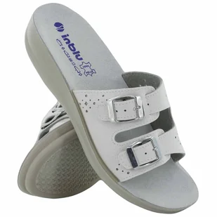 Białe klapki damskie Inblu sanitarne medyczne skórzana wkładka paski z klamrami EI99991Y