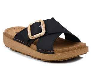Klapki damskie na platformie czarne skórzana wkładka Inblu ED-15-37
