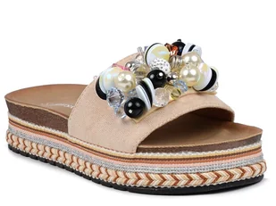 Klapki damskie na platformie na lato beżowe z ozdobą S.Barski HY077-36