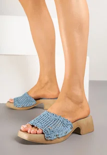 Niebieskie Klapki w Stylu Chodaków z Szydełkowym Paskiem Dilanne
