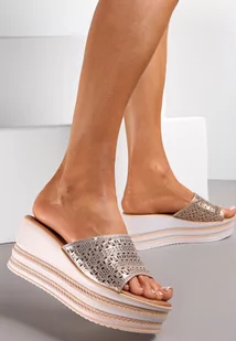 Szampańskie Klapki na Koturnie z Ażurowym Paskiem Fernenne