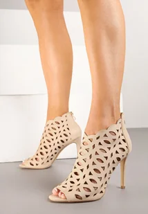 Beżowe Ażurowe Sandały Botki Vices na Szpilce Natessae