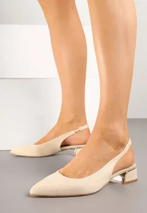 Beżowe Sandały Bez Pięty ze Skórzaną Wkładką i Metaliczną Aplikacją Weolira