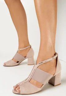 Beżowe Sandały Peep Toe z Imitacji Zamszu Zdobione Cyrkoniami Weslie