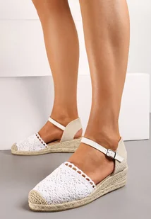 Białe Sandały Espadryle na Koturnie z Plecionką i Ażurową Koronką na Nosku Afridana