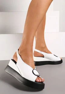 Białe Sandały na Koturnie Vices z Metalową Ozdobą Grisellda
