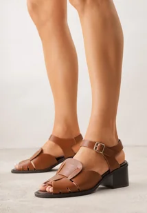 Brązowe Sandały na Obcasie Ozdobione Geometryczną Cholewką Salomia
