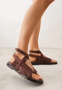 Brązowe Sandały w Stylu Rzymianek z Frędzlami Lysoph