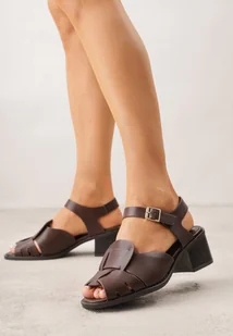Ciemnobrązowe Sandały na Obcasie Ozdobione Geometryczną Cholewką Salomia