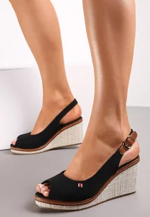 Czarne Sandały na Koturnie z Okrągłym Noskiem Tiyah